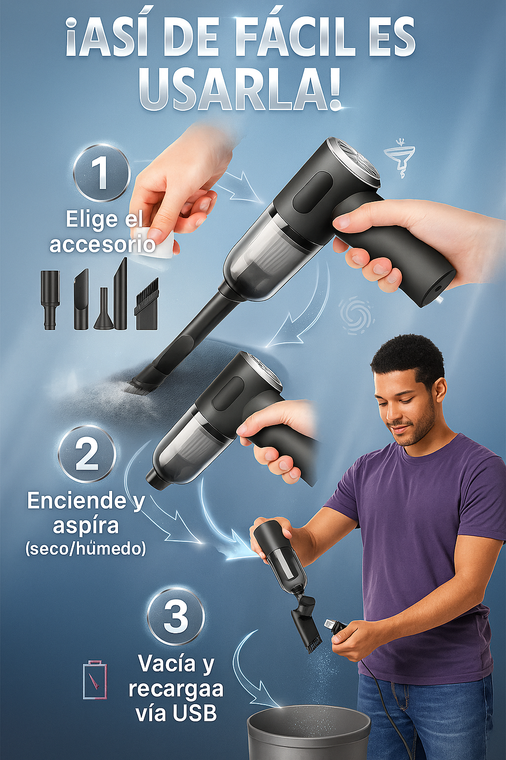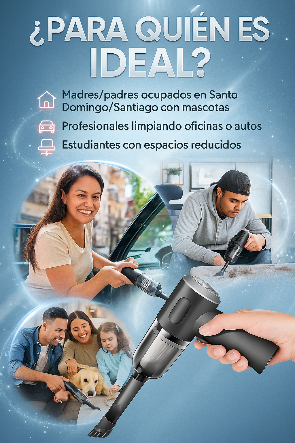 Sí, su diseño compacto permite usarla tanto en interiores del hogar como en espacios reducidos como el auto.