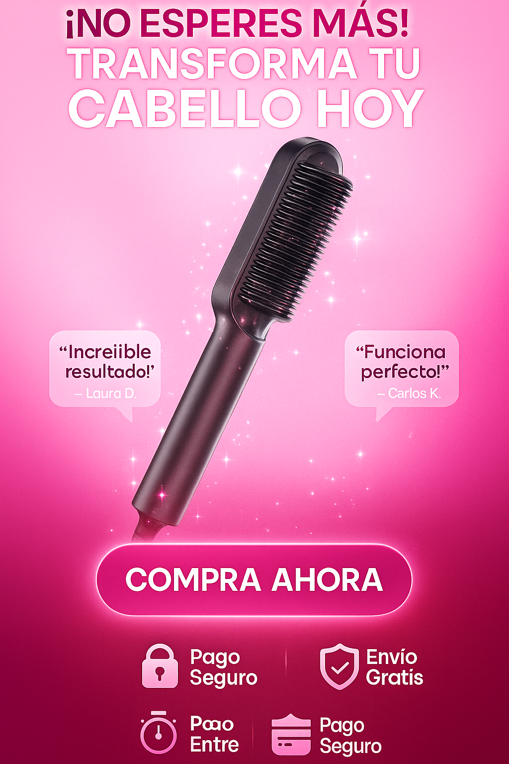 Totalmente 💖 Tiene 5 niveles de temperatura ajustables (de 130 °C a 210 °C) para adaptarse a todos los tipos de cabello: fino, teñido, rizado o grueso. Desde ondas suaves hasta rizos tipo 4C, este cepillo los deja lisos y naturales con una sola pasada. Además, su diseño anti-escaldado protege el cuero cabelludo en todo moment