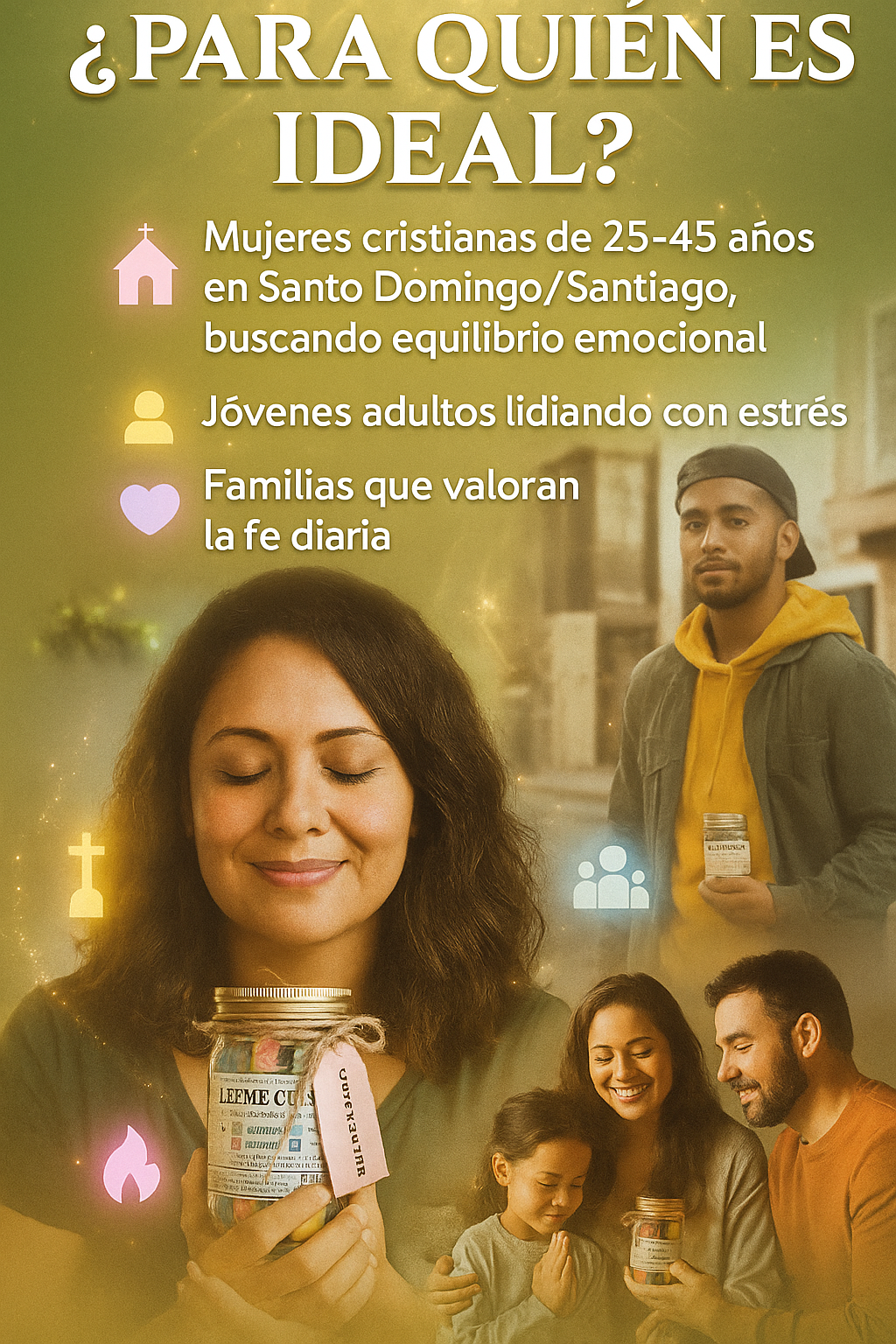 Es ideal para personas que valoran la espiritualidad o los mensajes bíblicos; por ejemplo, puede ser apropiado para regalar a un familiar que ora cada día o lo podemos usar como parte de un devocional diario en pareja o solo.
