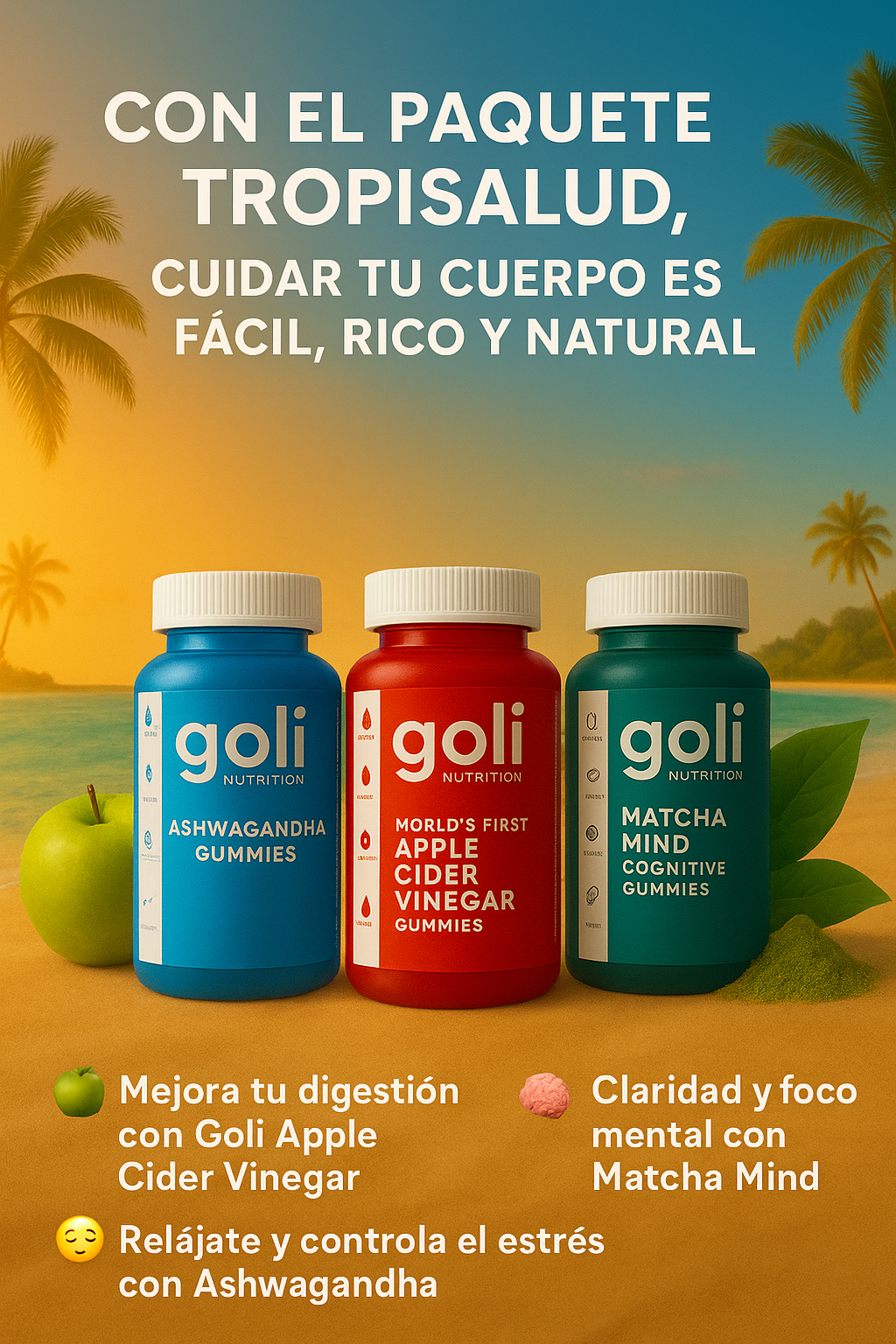 Te ayudan a mejorar tu digestión (Apple Cider), reducir el estrés y dormir mejor (Ashwagandha), y mantener claridad mental y energía natural (Matcha Mind). Todo en un formato práctico y delicioso.