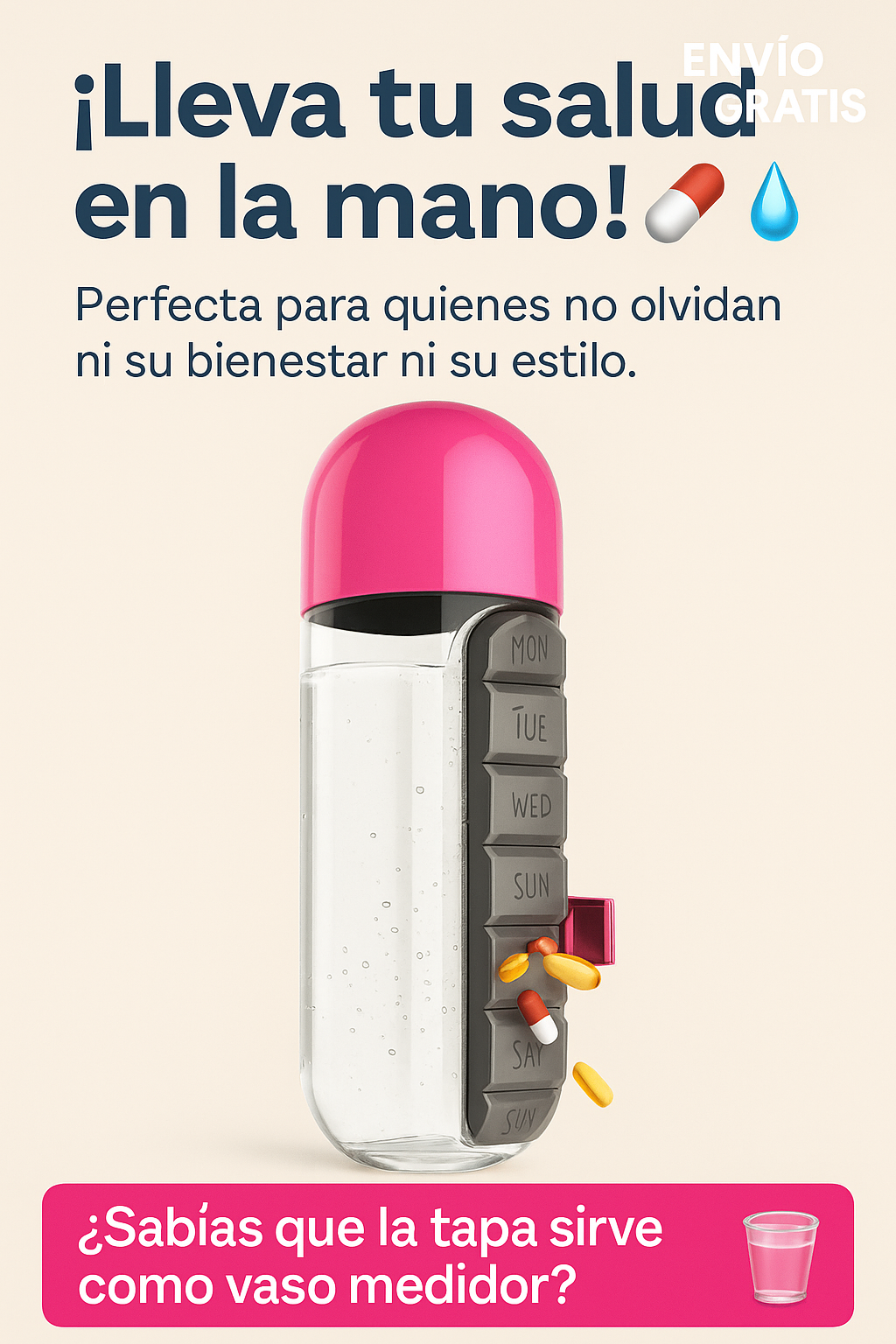 ¡Así es! La tapa está diseñada para funcionar como un pequeño vaso, perfecta para tomar tus pastillas en cualquier momento.